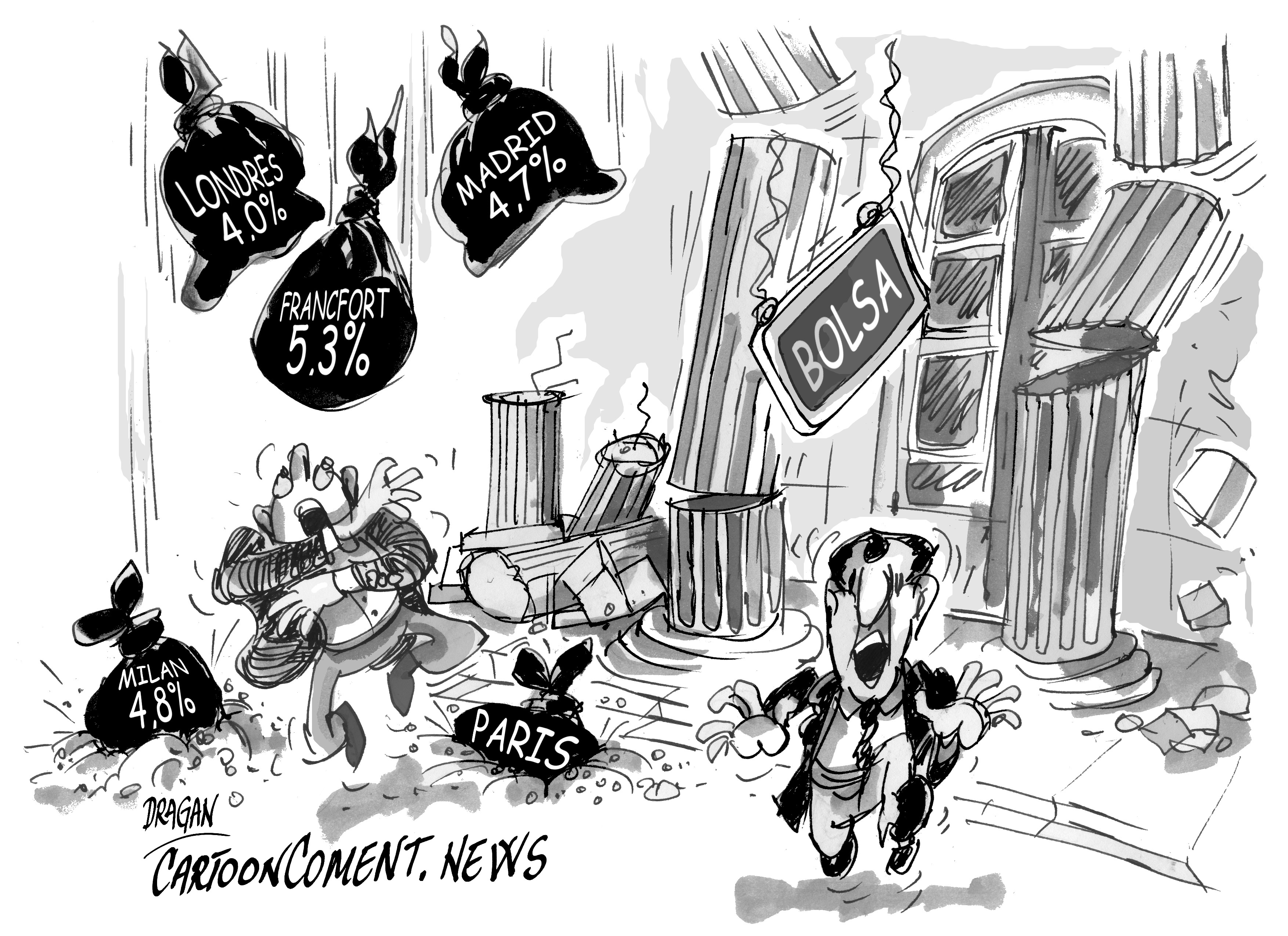 Tras un respiro en las últimas semanas, vuelven los bruscos recortes en las Bolsas europeas ante los renovados temores a una doble recesión. Todos los principales índices del Viejo Continente han registrado fuertes caídas, en la que es la tercera peor jornada del año.