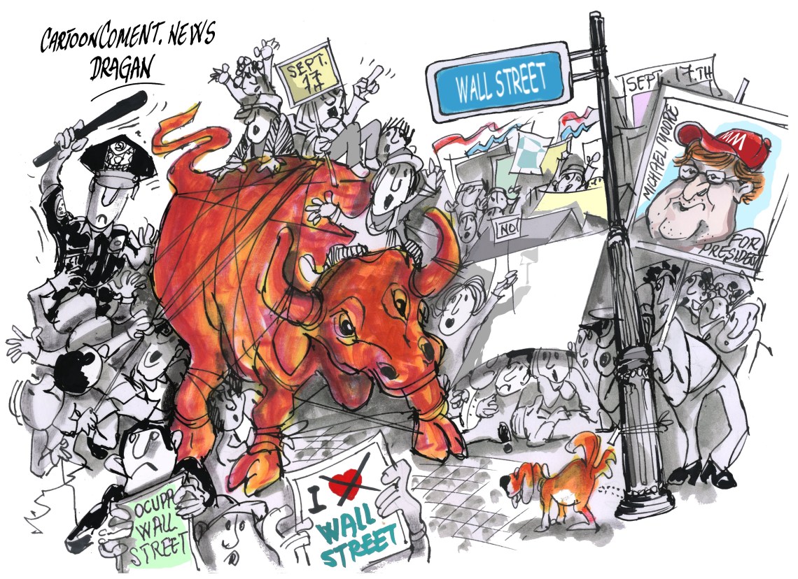 El cineasta Michael Moore visitó a los manifestantes acampados desde hace diez días en Wall Street para protestar contra la «avaricia» del sistema financiero, y afirmó que los responsables de haber «timado» a una generación entera de estadounidenses deben «rendir cuentas» ante la justicia.