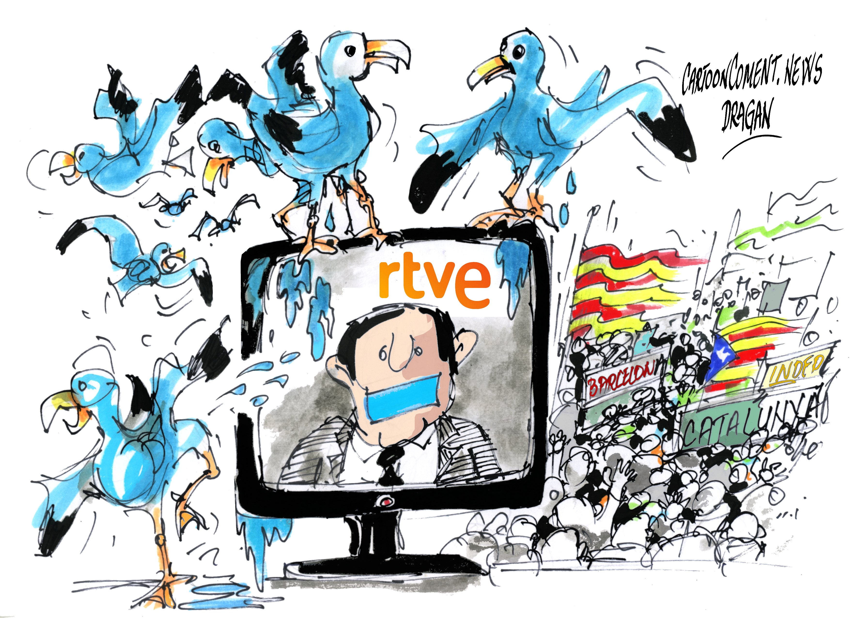 Seiscientos mil ciudadanos según la Delegación del Gobierno, 1.500.000 según los Mossos d’Esquadra, colapsaron ayer las calles de Barcelona.Fue, para cualquier observador mínimamente objetivo, una auténtica exhibición de fuerza del independentismo catalán.La nueva Televisión Española ,para el telediario de las nueve de la noche, la Diada se quedó en quinto lugar de importanci. La escaleta del infomativo situó la manifestación gigantesca de Barcelona exactamente en el minuto 20 y 23 segundos.